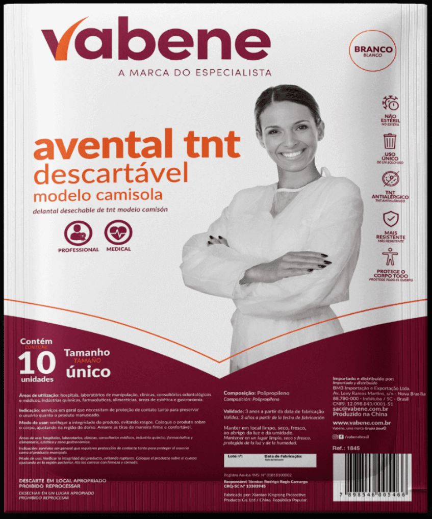 O avental tnt manga longa vabene promove higiene e proteção contra possíveis contaminações em procedimentos em geral. Com composição em tnt, possui costura overloque para melhor acabamento e durabilidade.