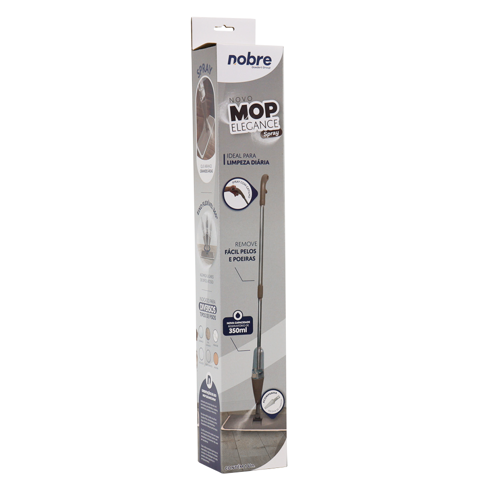 Ele borrifa, limpa e seca, sem riscar o piso. É ideal para a limpeza diária e pode ser utilizado em diferentes tipos pisos. Com o sistema de spray, que conta com reservatório para líquidos não oleosos de 350ml, você borrifa diretamente no local a ser limpo, reduzindo o uso de produtos para limpeza. Basta apertar o gatilho localizado no cabo! Com o Mop Spray Elegance é muito fácil limpar os locais mais difíceis, porque seu cabo tem inclinação de 180°. E o refil de microfibra pode ser retirado facilmente ir direto para máquina de lavar. Uma solução moderna e prática, que mantém suas mãos longe produtos químicos.